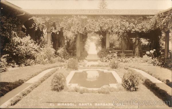 Front: EL MIRASOL, SANTA BARBARA CAL Back: POST CARD PRTURA PLACE TURA POST CARD STAMP RTUR HERE CORRESPONDENCE ADDRESS Dunia