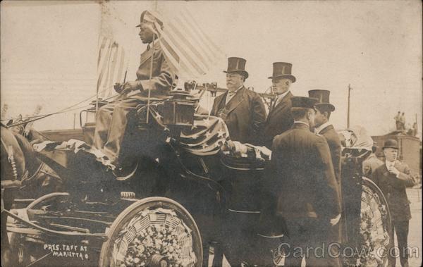 Front: PRIS. TAFT AT MARIETTA O Back: PLACE OSTAQU POST CARD CORRESPONDENCE NAMS AND ADDRESS STA 3500
