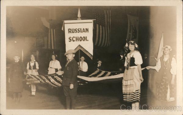 Front: RUSSIAN SCHOOL Back: Russian Parede – El. POST CARD AA z 0 A A PLACE A STAMP z HERE O CORRESPONDENCE ADDRESS