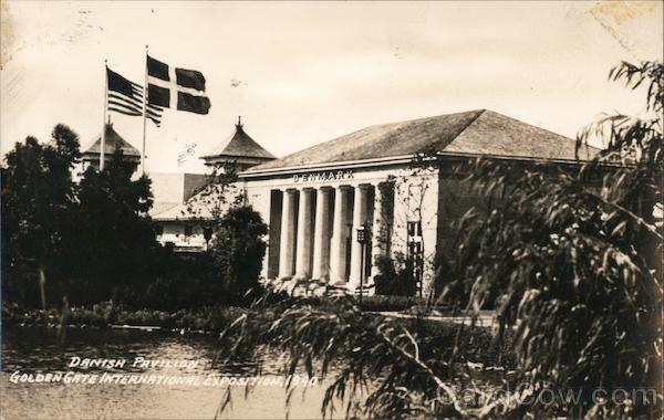 Front: DENMARK DANISH PRVILI GOLDEN GATE INTERNATIONA Back: POST CARD PLACE STAMP HERE P. CORRESPONDENCE ADDRESS