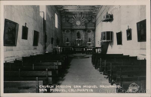 Front: XOXOKOKO CHURCH MISSION SAN MIGUJEL ARCHANGEL SAN MIGUEL, CALI FORNIA Back: POST CARD ADDRESS DESERT SOUVENIR SUPPLY, BOULDER CITY NEVADA