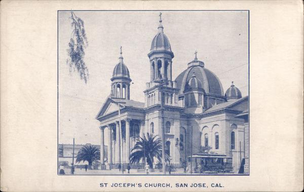 Front: 00000000 000000 ST JOSEPH'S CHURCH, SAN JOSE, CAL. Back: POST CARD PLACE POSTAL STAMP HERE THIS SPACE FOR CORRESPONDENCE. THE ADDRESS ONLY TO BE WRITTEN HERE.