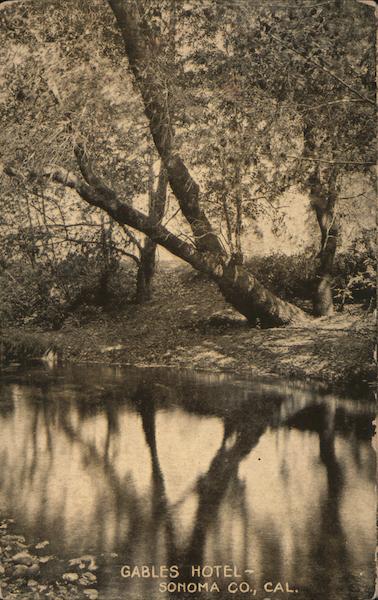 Front: GABLES HOTEL- SONOMA CO., CAL, Back: PLACE STAMP POST CARD DOMESTIC ONE CENT PUBLISHED BY THE BLAIR MURDOCK CO., SAN FRANCISCO, CAL. FOREIGN TWO CENTS CORRESPONDENCE ADDRESS