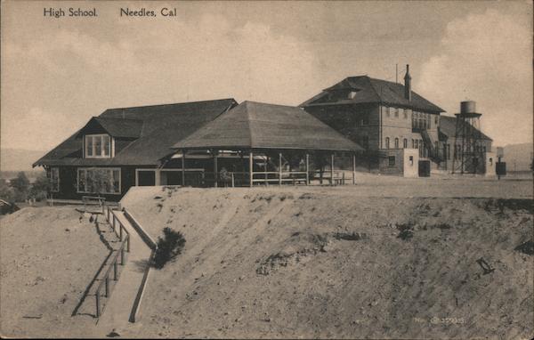 Front: High School. Needles, Cal No. @178, Back: POST CARD Published by Fred. Harvey. THIS SPACE FOR MESSAGE. THIS SPACE FOR ADDRESS.