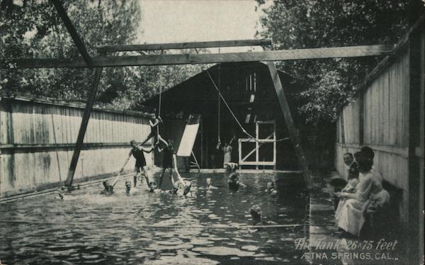 Front: Fhe Tank 26 75 feet ETNA SPRINGS, CAL.,. Back: POST CARD PLACE STAMP HERE THIS SPACE FOR CORRESPONDENCE THIS SPACE FOR ADDRESS ONLY
