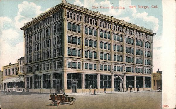 Front: The Union Building. San Diego, Cal. 1 UNION FALAN 6815. Back: 1c. for United States and Canada 2 c. for abroad COMMUNICATIONS SERIES Made in Germany