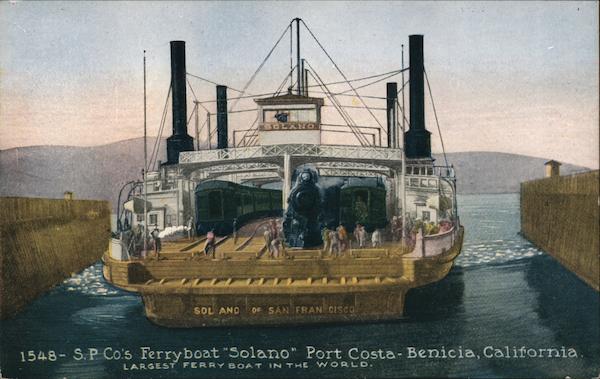 Front: ASCLANO OF SAN FRAN CISCO SOL ANO 1548- S.P Co's Ferryboat "Solano" Port Costa- Benicia, California LARGEST FERRY BOAT INTHE WORLD. Back: IR PACIFIC NOVELTY CO. SAN FRANCISCO GLOS ANGELES -