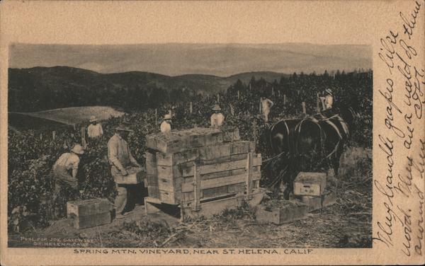 Front: LOM PUBL.FOR JOE GALEW SRY ST.HELENA,CALIE SPRING MTN, VINEYARD, NEAR ST HELENA, CALIF Back: Domestic 1 Ct. Foreign 2 Cts. HE ALBERTYPE GO. BROOKLYN, NY. This space is for the