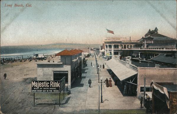 Front: Long Beach, Cal. MAJETISIRNA Majestic Rink WEST OF BATH HOUSE. OPEN EVERY DAY IN THE WEEK. Back: Rosin & Co, Phila, & New York. Made in Germany.