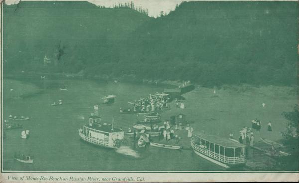 Front: View of Monte Rio Beach on Russian River, near Grandville, Cal. Back: CorrespondenceĀ® * Address - Address CAL lad vaca Jeu0eu keill certany dello Irena July 2014 Miss Irene Welch 4171-24 San Fran