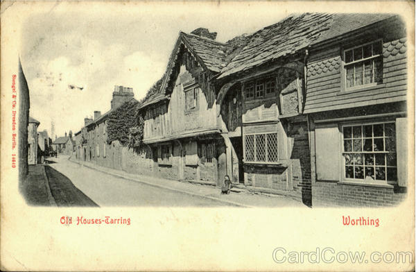 Front: Stengel & Co. Dresden-Berlin. 14649 Old Houses-Tarring Worthing Back: WOR 7.15 STAGE HALF PENNY Mr Bolton 14 Clayton Is Wass Newcastle ou que 50 &REVENUE