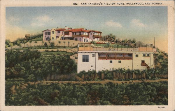 Front: ANN HARDING'S HILLTOP HOME, HOLLYWOOD, CAL FORNIA 812 %3D 2 A-H32 Back: 182 sold to Rudy Vallee " to Jane Mansfield 11/6/ sold to Liberace 1-25-62 WESTERN PUBLISHING & NOVELTY CO., LOS ANGELES, CALIF.