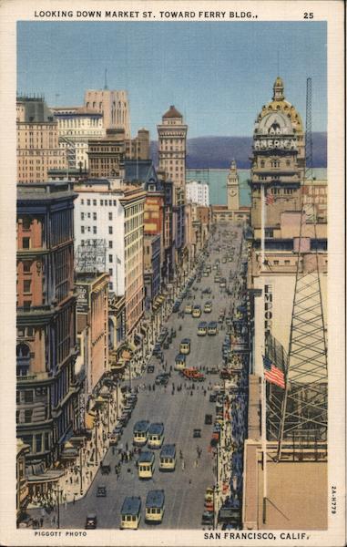 LOOKING DOWN MARKET ST. TOWARD FERRY BLDG.,