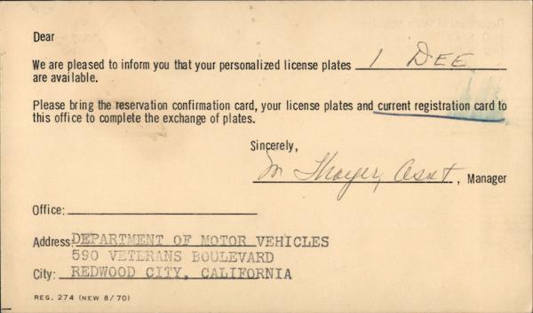 Please bring the reservation confirmation card, your license plates and current registration card to