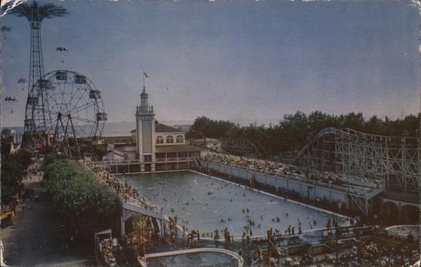 (3 4 66 STEEPLECHASE SWIMMING POOL, CONEY ISLAND, N.Y. Color R Card FROM KODACHROME A MIKE ROBERTS COLOR PRODUCTION. BERKELEY 2. CALIFORNIA E-3 Distributed by Enco Inc., New York 3, N. Y.