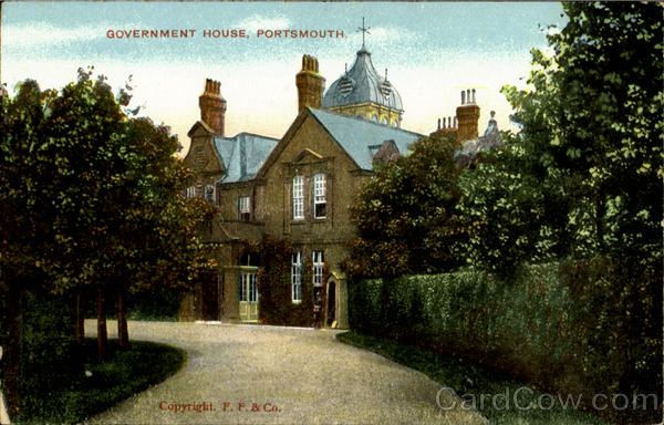 Front: GOVERNMENT HOUSE, PORTSMOUTH. Copyright. F. F. & Co. Back: COMMUNICATION HERE. INLAND ONLY. Printed in Bavaria