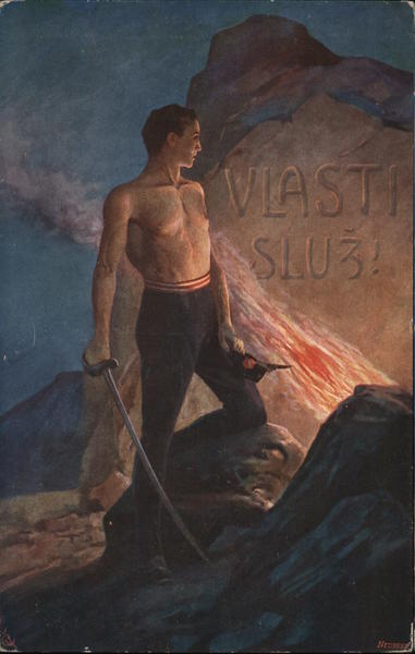Front: VIASTI SLU3! NEUBERT Back: SOKOLSKÝ POZDRAV! Probuzenin o fondu ve prospect Oid POW zozo Umělecké dopisnice akad. malíře Věnceslava Černého. 450—5