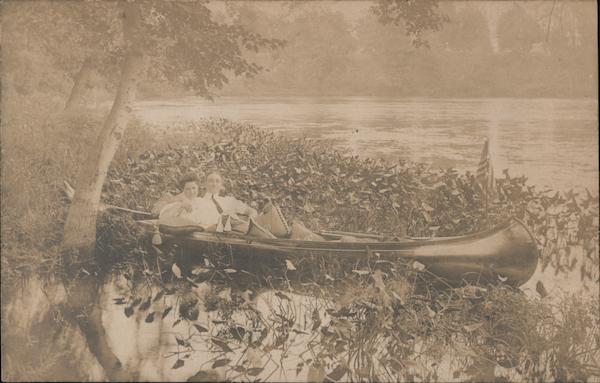Couple in a canoe on a lake