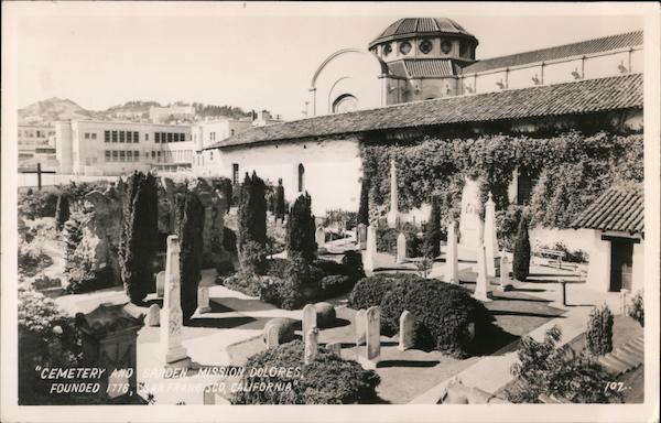 "CEMETERY AND GARDEN MISSION DOLORES, FOUNDED 1776, SAN FRANG SCO CALIFORNIA 707