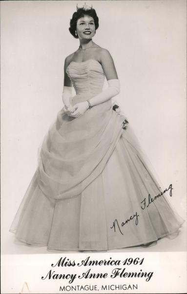 Front: Fleming Naney Miss America 1961 Nancy Anne Fleming MONTAGUE, MICHIGAN %20 Back: Bervin Johnson, Photographer – Whitehall, Michigan