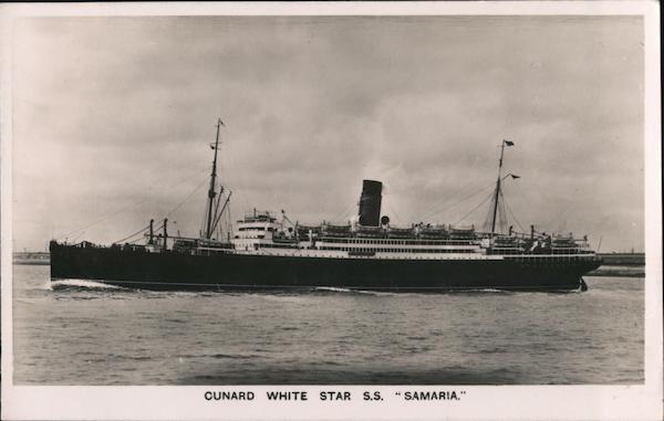 Front: CUNARD WHITE STAR S.S. SAMARIA." 66 Back: POST : CARD BRITISH A REAL PHOTOGRAPH COMMUNICATION MANUFACTURE