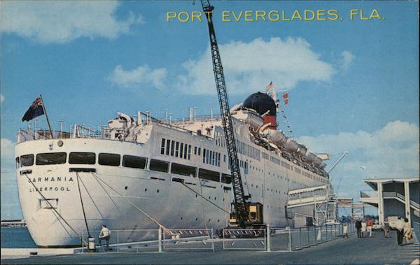 Front: PORT EVERGLADES, FLA. HIHO ARMANIA LIKERPOOL Back: ONE OF THE MANY CRUISE SHIPS nestled at the dock, at Port Everglades, Fla. #2811 DUKANE SCENIC S., HOLLYWOOD, FLORIDA 33020 DUKANE PRESS O HOLLYWOOD, FLA