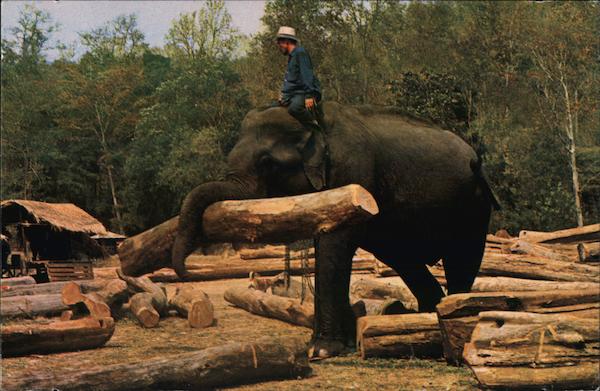 Elephants working in forest, Chiengmai