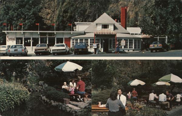 setting beneath a 100-ft. cliff. Charcoal broiled hamburgers