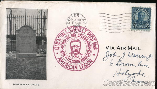 TI VA VIVA ULTIMO VV MAY 307 1130 ANS CROOSEVELS 00000000000000 SRO no SW.HON OTIONIEN ST No.4 VIA AIR MAIL Joh I Warrench 6 Brown hue ROOSEV CAN LEGY Opon ROOSEVELT'S GRAVE