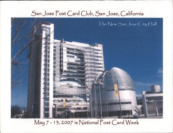 Front: The New San Jose City Hall Back: San Jose Postcard Club P.O.Box 32042 San Jose, CA 95152-2042 Message to be written here. ecar, who boug Buaib Kawasakugha, San Jose, Califu mwalia Problished Bagames. S 015