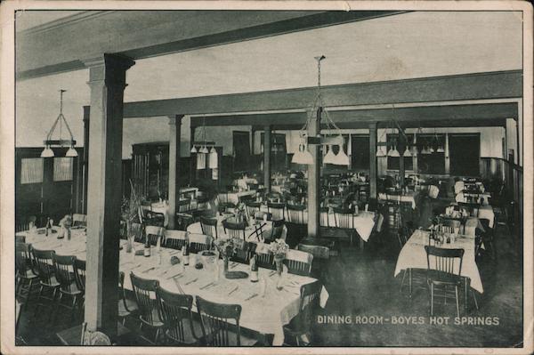 Front: DINING ROOM-BOYES HOT SPRINGS Back: RIN TES NU tello schermelie fa Miss Edith Humle e Rohn Bros Clakland Core