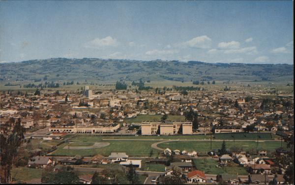 Petaluma is the largest poultry center in the west and has become known as "The Egg Basket of the World." Dairying is also a major agriculture of this area of mild climate, low elevation and easy access to the San Francisco Bay Area. Petaluma is located on the Redwood Highway. |