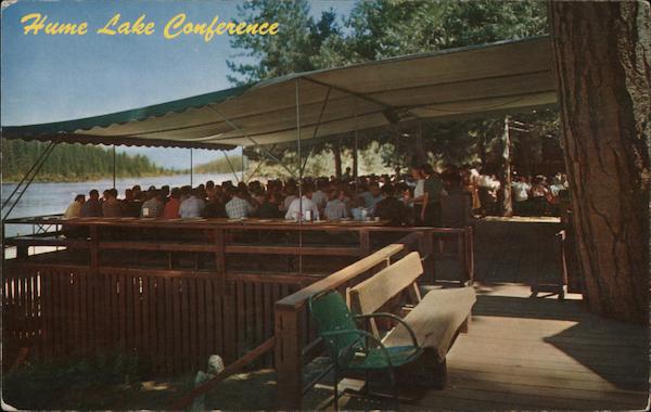 Front: Hume Lake Conference Back: Outdoor dining area at HUME LAKE NATUR URAL COLOR Mike Koberta BERKELEY 2, CALIF. Distributed by Bob Ball, Visalia, California 07395