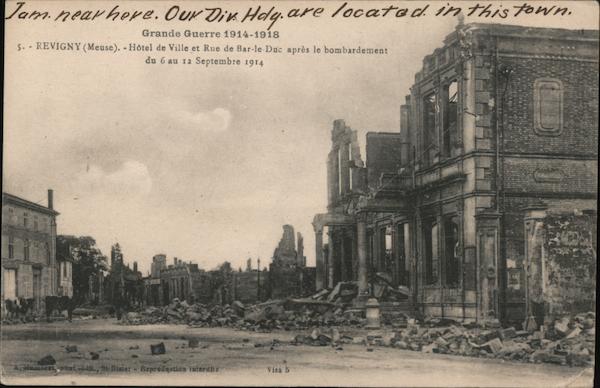 5. - REVIGNY (Meuse). Hôtel de Ville et Rue de Bar-le-Duc après le bombardement