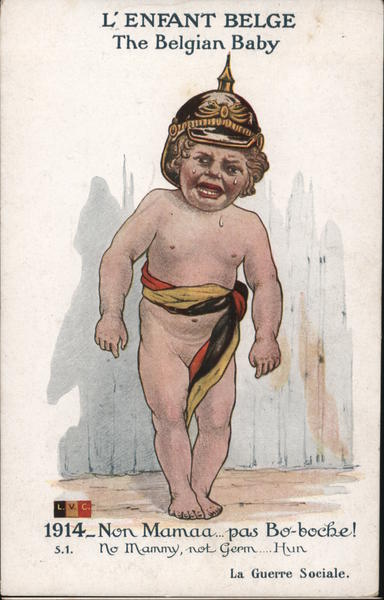 Front: L'ENFANT BELGE The Belgian Baby Durm L. V. C. 1914 Non Mamaa. pas Bo-boche! No Mammy, not Germ.. Hun S.1. La Guerre Sociale. Back: 35- Adresse du destinataire lova