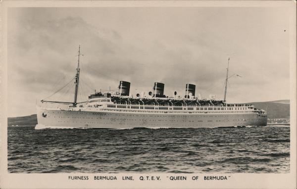 Front: iii iii iii i i ii i ... . ...... .... .. .... .*... .... FURNESS BERMUDA LINE, Q. T. E. V. "QUEEN OF BERMUDA " Back: POST : CARD. A REAL PHOTOGRAPH BRITISH MANUFACTURE COMMUNICATION