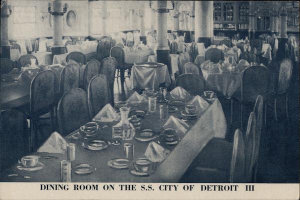 Front: DINING ROOM ON THE S.S. CITY OF DETROIT III Back: MY GREAT LAKES CRUISE MADE IN USA CH GLOGO BD DANLEY CONCESSION CO. D&C-643 FRONT, DETROIT, MICH. RS AWEI SAN Steamship Passenger's Name