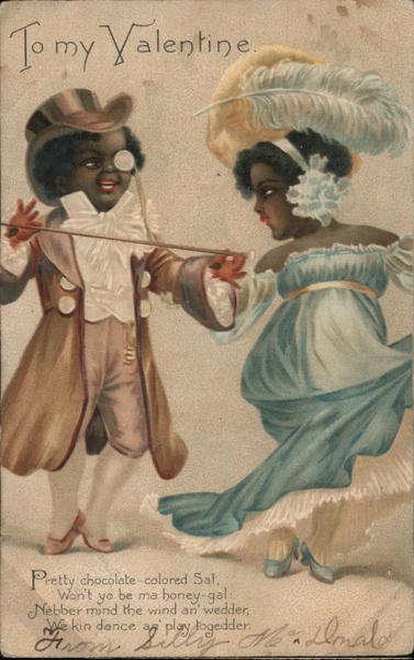 Front: To Yalentine. my Peetty chocolate-colored Sal, Won't Nebber mind the wind an wedder, We kin dance ag play togedder 0alo yo be ma honey-gal: From Sitl Back: Miss Stella Mări loanchang Class