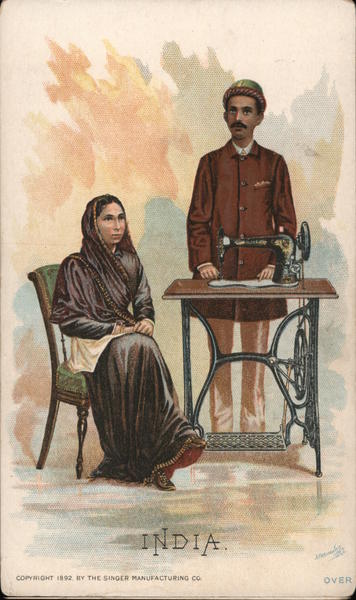 USUAL COSTUME. THE SINGER SEWING MACHINE HAS BEEN A FACTOR IN