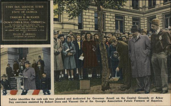 Tablet identifies the cork oak tree planted and dedicated by Governor Arnall on the Capitol Grounds at Arbor