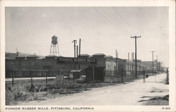 Front: PIONEER RUBBER MILLS FACTORY ENTRANCE PIONEER RUBBER MILLS, PITTSBURG, CALIFORNIA N-423 Back: CLEAR VIEW PRODUCED BY MASTERCRAFT PICTURES, SAN FRANCISCO, CALIFORNIA