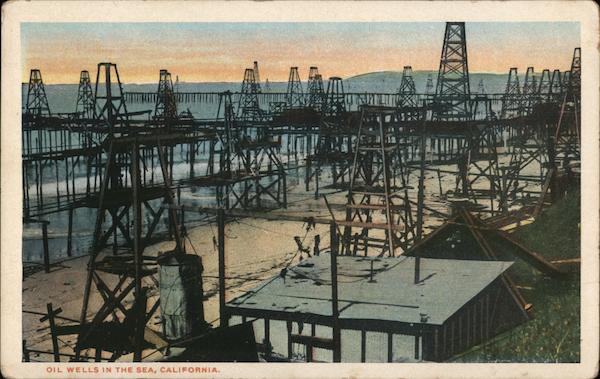 OIL WELLS IN THE SEA, CALIFORNIA.