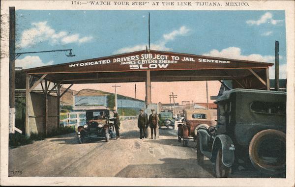 174:-"WATCH YOUR STEP" AT THE LINE, TIJUANA, MEXICO.