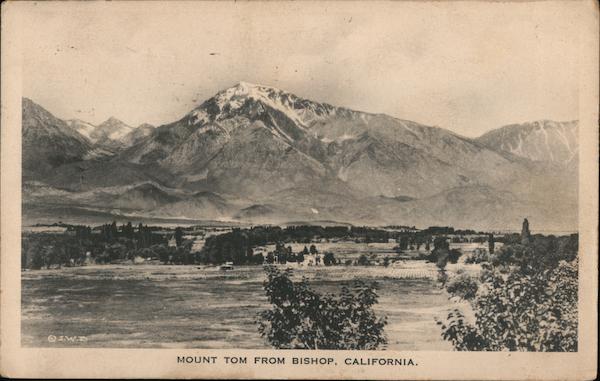 Front: MOUNT TOM FROM BISHOP, CALIFORNIA. Back: Published by Bernard Book Store, Bishop, Cal. beautch 1. our on now sigre Sante Lake vakre havna o we sue T CARD THIS SPACE FCR ADDRESS. ello E. Bldg. ситаи Effie tronnan Cally