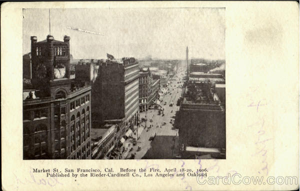 Market St. San Francisco, Cal. Before the fire, April 18-20, 1906. Published by the Rieder-Cardinell Co., Los Angeles and Oakland.