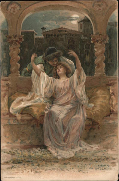 Front: Romeo and Julire SHAKESPEARE SERIE Back: Postkarte - Carte postale - Cartolina postale Levelező -Lap - OTKPHITOE INCÓMO — Dopisnice Brefkort. SPEDEIRE 10