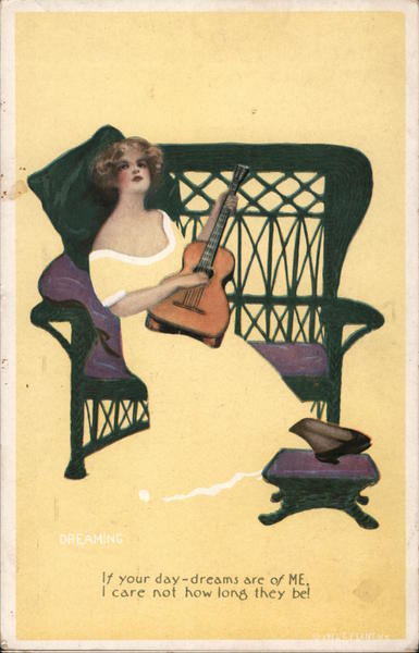 Front: %3B DREAMING If your day-dreams are of ME. I care not how long they be! 0000 NINT CIET O Back: 2) AS ROSTOR Ost Card IIII وز19 ONLY THE ADORAS MAY IT EN HERE Mic ک یا۔ THE GIBSON ART GO. CIN., O کا ایسا کردار ادا ایرانی