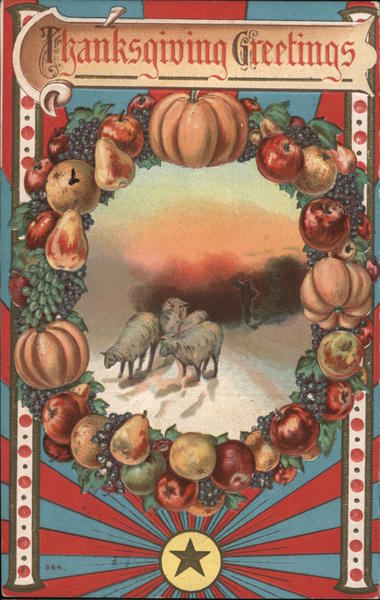 Front: Thanksqiwing Greetings 364 Back: U.S. POSTE S&CO A. GC 1909 106 Clermoneta Nether 14319 den with best wishes A for Than Dear APO: Mis Ema Kinson Tristin anksgiving Ema and Chap Calif.