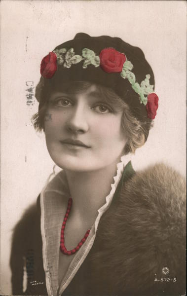 Front: OTARA HOTS RITA MARTIN A.572-5 Back: 1Q REVENUE CARDIFF 2. JUL To Trish mis bolith foresis st from Ethel th love Rotary Photo, London, E.C. Harold Routh birthday Car nd This is a HAND-PAINTEREPHOTOGRAPH of a BRty. MISS LILY ELSIE