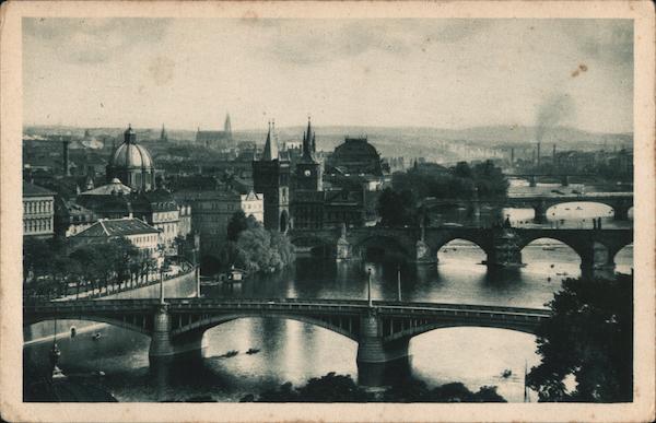 PRAHA. Celkový pohled na 4 mosty.
